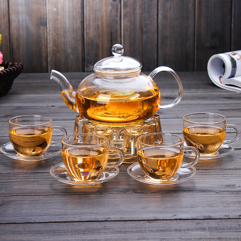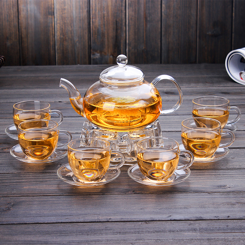 Chine Kongfu Tea Drinking Set théière en verre transparent avec plateau de tasses et réchauffeur
